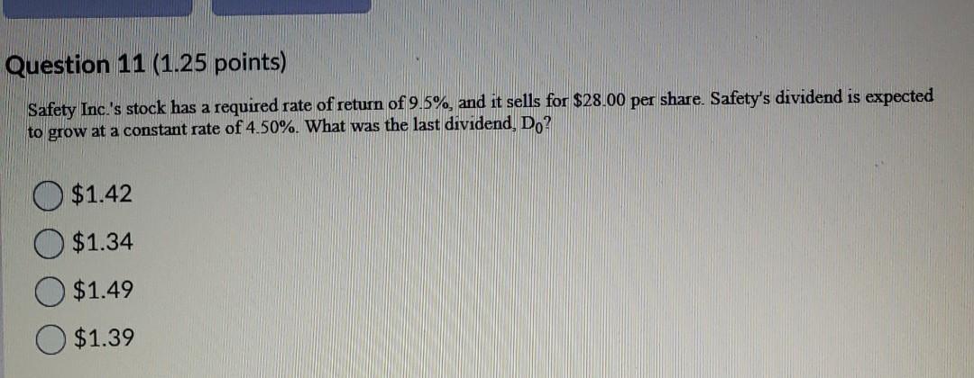 Solved Question 11 1 25 Points Safety Inc S Stock Has A Chegg Com